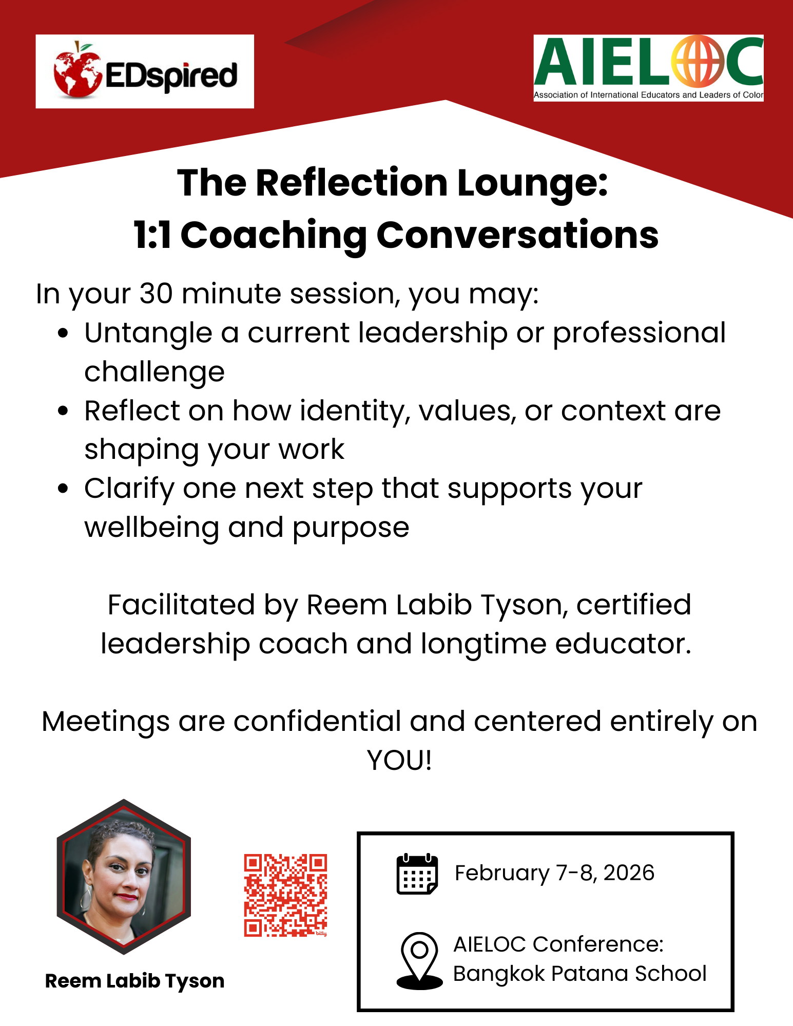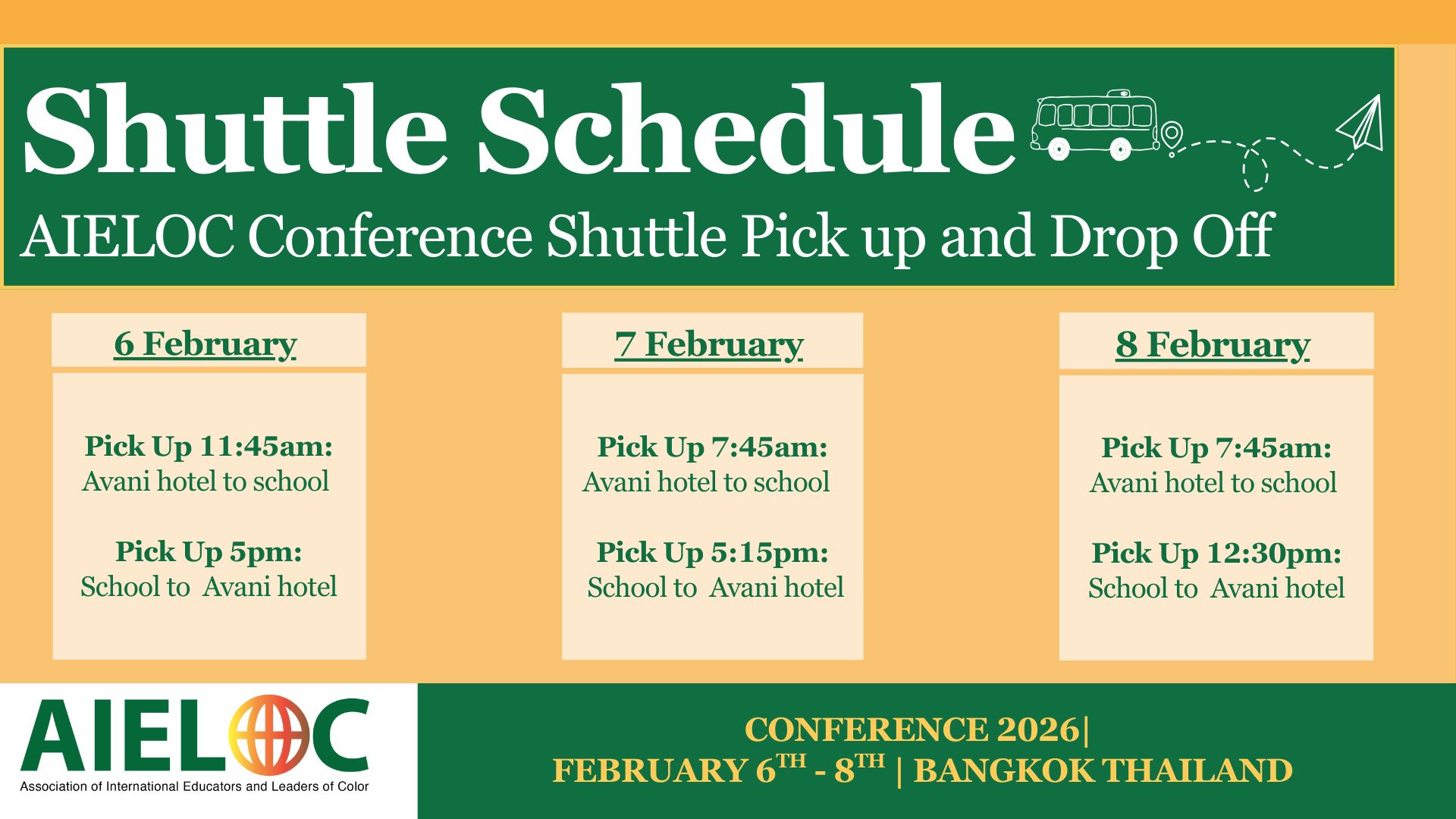 Student Artwork Presenters View Speaker Bios Agenda Session Schedule Click Here To View Session Descriptions Leadership Coaching: The Reflection Lounge Partners Travel Information Hotel, Visa, Weather, Things To Do In Bangkok , Etc. Suggested Hotel Avani Sukhumvit Bangkok Hotel Book Now Visa Visit Thai E-Visa Official Website Weather View The Outlook Here Things to do in Bangkok Food Tour, Bike Tour, Explore Famous Temples, Click Here To Learn More